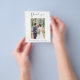Casamento de Orçamento Obrigado Cartões que têm uma foto na frente e atrás. Os cartões de agradecimento contêm uma tipografia cursiva moderna, escrita com letra de mão, que é elegante, simples e moderna para usar depois de você celebrar o dia de casamento simples e minimalista.