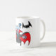 Esta design é uma dracula e um morcego. Drácula tem sua capa aberta e há um morcego voando por aí. Esta drácula e design de morcego parece excelente nesta Mug