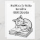 Página de coloração para adultos. Um gatinho doce dormindo no topo de um livro perto de uma xícara de café quente.