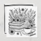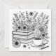 Cartão de cor para adultos. Uma pilha de livros antigos, flores e uma xícara de café com uma doce mensagem de apoio no verso que você pode personalizar.