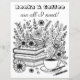 Página de coloração para adultos. Uma pilha de livros antigos, flores e uma xícara de café com uma citação que diz, "Livros e Café são são tudo que eu preciso."