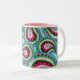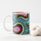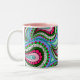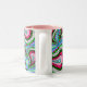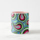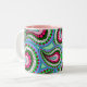 Uma caneca com o paisley feminino colorido. Há uns lotes de rosa chocante, de verde da hortelã, e de luz - azul.