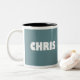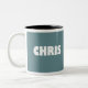 caneca conhecida Azul-cinzenta de Chris. O nome aparece para trás e parte dianteira.