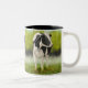 O design original das belas artes de uma vaca de leite de Holstein em seu pasto pelo ilustrador Carolyn McFann em uns dois legal tonifica a caneca de café para fãs do animal de fazenda.