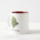 Caneca com design de árvore de Natal clássica, vermelha e verde. Mensagem de "Feliz Natal" por baixo.