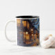 Enrole suas mãos em volta dessa caneca maravilhosamente projetada com uma cena de rua serena e iluminada por lanterna. Inspirada pela arquitetura tradicional do leste asiático e pelas aconchegantes noites chuvosas, esta caneca traz calor, nostalgia e charme pacífico ao seu café da manhã ou ao chá da noite.