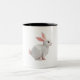Essa caneca de cerâmica elegante apresenta um design de coelho geométrico surpreendente, feito com linhas limpas e formas triangulares.