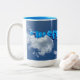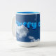 Mug com foto do céu azul com nuvens e o texto "Nuvens Fluffy".