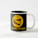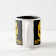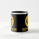 Canecas de Murray Rothbard "Rothbardian". Caracteriza o texto "anti-state, pacífico, de livre mercado" no ouro com perfil do Dr. Rothbard sobre um fundo preto.
