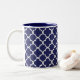 Caneca cerâmica do monograma contemporâneo do teste padrão do quatrefoil dos azuis marinhos.