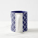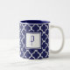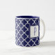 Café Em Dois Tons Caneca do monograma de Quatrefoil dos azuis