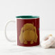 A caneca do pai do Dachshund com uma opinião dianteira do nariz grande um Dachshund em um lado da caneca e sua retaguarda adorável suportam a vista no outro lado da caneca. As cores e o texto do fundo podem ser mudados. Apenas clique sobre Customize ele botão.