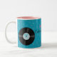 Caneca do aniversário do divertimento colorido a 50th feita em um fundo retro de turquesa com a estrela branca e cor-de-rosa estoura. Os gráficos de um rosa e de um jukebox de turquesa, uma nota musical, e um registro de vinil decoram o fundo. O texto cor-de-rosa é o nome da menina do aniversário, com a leitura preta do texto, fabulosa & os cinqüênta. Todo o texto é customizável serir suas necessidades. Adicione doces ou flores a esta caneca para uma grande ideia do presente de aniversário.