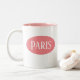 Uma boa caneca rosa que diz Paris. Design moderno com um olhar parisiense.