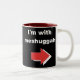 Esta caneca judaica espirituoso do humor caracteriza uma seta e o texto "eu sou com meshuggah." Esta é uma inclinação judaica no mim é com artigos estúpidos que você vê.