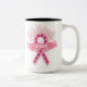 Café Em Dois Tons Fita Rosa De Uma Caneca Branca De Esperança