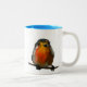 Café Em Dois Tons pisco de peito vermelho na caneca do ramo com