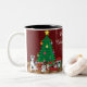 Esta caneca adorável tem uma rouco de mamãe brincando com seus filhotes nos presentes ao lado da árvore de Natal de um lado. Enquanto se envolve, diz Feliz Natal e, do outro lado, tem mais dois roucos enrolados ao lado de um fogo quente e convidativo.