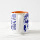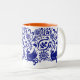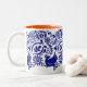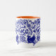 Esta caneca azul e branca saboroso, com um interior alaranjado, foi inspirada pelo russo e a arte popular do Hungarian e projetado por Maine baseou o woodman-Maynard de Katharine do artista.