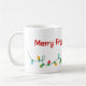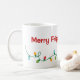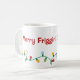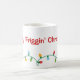O espírito natalino te faz sentir um pouco de humor? Esta caneca ajudará as pessoas a saber como se sente. Luzes de Natal divertidas e retorcidas são colocadas no fundo da caneca com as palavras Feliz Friggin' Christmas acima dela feita em vermelho. Coloque seu cacau quente ou seu ovo picado nesta caneca com estilo.
