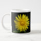 Esta caneca incrível apresenta uma fotografia de uma flor amarela de dente-de-leão. A foto foi tirada usando macrofotografia, resultando em detalhes tão brilhantes que você pode ver as pétalas individuais e as sombras projetadas nelas.