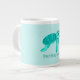 Mug com design de tartaruga e texto "Turtley legal". O design é personalizável.