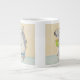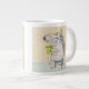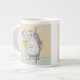 Narrador de caricaturas sentado diariamente num pequeno banquinho azul almofadado. Ela está encarando com sabedoria a distância. Em sua "mão" está uma linda xícara verde-clara e um disco. O copo é acentuado por um cabo verde escuro com laranja tangerina no dentro do copo.