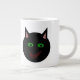 Esta caneca espetacular apresenta um gato preto com orelhas pontiagudas, olhos verdes brilhantes e um sorriso vermelho sorridente. Este gatinho assustador é perfeito para o Halloween ou para amantes de gatos.