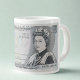 Caneca Jumbo de £5 Nota Britânica – Rainha Elizabeth II – Design de 1971 – Citação “Valorizada, Radiante, Inquebrável” – Presente Romântico para Esposa, Noiva, Namorada – Caneca de Café Extra Grande – 20oz