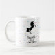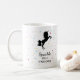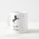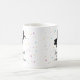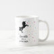 Uma linda caneca com um unicórnio, citação motivacional e brilho colorido como fundo.