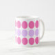 Esta caneca do desenhista caracteriza um teste padrão feminino da modificação de pontos verdes do lilack e do rosa em um estilo contemporâneo, geométrico.