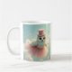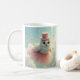 Mu divertido com uma foto de uma coruja vestindo um tutu e um chapéu, voando no céu cercado por diamantes