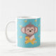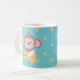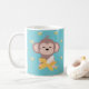 Esta caneca tem uma imagem de um macaco bonito do kawaii com uma banana, e as bananas por todo o lado no fundo.