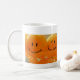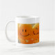 Uma caneca alegre do divertimento para que seu chá ou café esteja bêbedo de, caracterizando a imagem fotográfica de balões enfrentados alaranjados brilhantes em uns lado e texto que dizem "mantem-se no sorriso" no outro