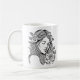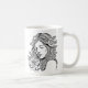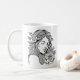 Café Mulher elegante negra e branca com caneca de flore