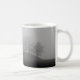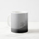 Mug com uma foto branca e preta de uma colina com árvores na neblina. Personalizável.