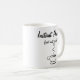 Uma caneca com o texto "ser humano imediato apenas adiciona o café" seguido por um design do café embaixo.