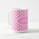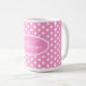 Garotas modernas, uma bolinhas rosa brilhante, uma caneca padronizada. Perfeito para personalizar sua bebida ou um presente de excelente para um amigo como presente de Natal ou aniversário para uma mulher ou adolescente. Personalize com sua própria escolha de nome e inicial. Este exemplo diz: Maxine K. Design por Sarah Trett.