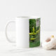 Peacock em uma caneca de reprodução de fotos no jardim