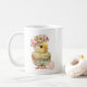 Pintinho de Páscoa de aquarela e caneca de Páscoa de ovo. Uma bela ideia de presente de Páscoa para o café ou amante de cacau quente na sua vida. Pintinho doce com coroa de flores na cabeça, elegante coloração d'água Ovo de Páscoa e Felz pascoa saudando ao contrário. Personalize esta caneca para um presente de Páscoa personalizado. Você pode encontrar mais Páscoas bonitinhas e personalizáveis na Coleção Colorida de Designs de Páscoa na loja Beautily Abstrato.