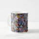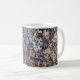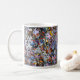 Fotografia das peças de quebra-cabeça de serra de vidro impressas em ambos os lados da caneca.