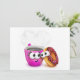 Um design de um café quente e uma rosquinha juntos. Tanto a xícara de café como a rosquinha têm olhos e estão olhando uns para os outros. Este café quente e uma design de rosquinha parecem excelentes neste Convites
