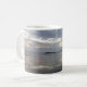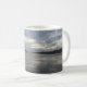 Reflexões cintilando da água do sol que ajusta-se sobre uma praia em Swansea.