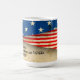A caneca de café com aspas inspiradoras apresenta Salmos Bíblias 33:12, Abençoado é a nação cujo Deus é o LORD, num passado antigo de bandeira americana.~