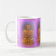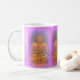 Café sereno de aura roxa sentando budhas caneca