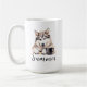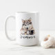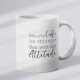Uma caneca de café matinal com uma husky siberiana com nome personalizado no estilo do roteiro. "Que seu Café seja mais forte do que a atitude do seu cão" está escrito nas costas. Presente perfeito para donos de cães que têm um cachorro com atitude e também adoram café.
