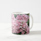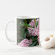 Os louros de montanha rosa e branca florescem nesta caneca