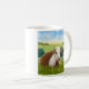 Uma vaca de Hereford e sua vitela sentam-se em seu pasto neste design original da caneca de café por Carolyn McFann do estúdio de ronrom de dois gatos. Um grande presente de época natalícia para membros de clube da agricultura 4H, fazendeiros e fãs bovinos.