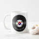 Viciado à caneca de Kpop que caracteriza um disco do vinil mas com dedicação ao musica pop e ao entretenimento coreanos. A bandeira coreana no meio é a grande representação da onda de Hallyu que é tomada sobre o mundo pela tempestade. A deve ter para fãs de Kpop.