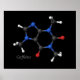 Poster preto com um modelo molecular codificado em 3D de cafeína.